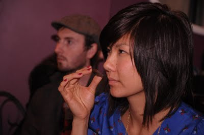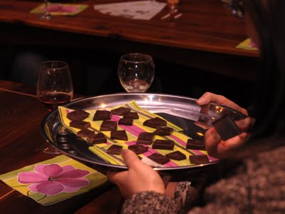 Rachel serving wine to pair with the chocolates. In the forefront is one of her chocolate sculptures, which was shown at Ayden Gallery.Yesterday, Rachel of CocoaNymph and me have launched our 3 scented chocolate bars that we were concocting all summer. These bars are like no other chocolate bar in the world as far as we know... They are original, refined stories told in the language of of the senses - primarily the palate and the nose, but also texture and visuals are part of the experience, as you will be able to see for yourself when you meet these bars in person.