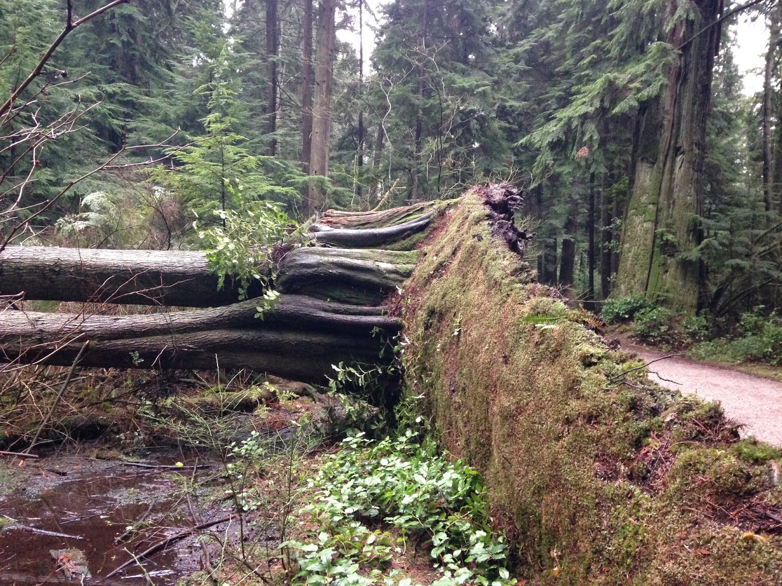 And this is how life meets death. Or perhaps the other way around - death is the one that greets life and reaches out to it. In the rainforest the coexistence of these two opposites is the most obvious, natural. And if it weren't for the drama and tragedy of the storm, those two states of being just weave in and out of each other seamlessly. The trees took about four weeks to use up their water, shut down their entire systems of livelihood, and say their farewells to the world as they lay horizontally and stare at the barren skies through the space their missing canopy left behind. After checking their plus this weekend, I am pretty sure that they are now among the dead. Not only are the needles no longer green, many have already began falling to the ground. And there is something you cannot see, but only feel, that tells me they are now just inanimate objects, vegetal corpses providing nutrients to the new generation of trees, bushes, housing birds and squirrels, bugs and microorganisms that will take many years to penetrate the strong essential oils in the heartwood to completely break it down. It will become, eventually, part of the soil and part of the root system of those new plants and create an intricate piece of the rainforest ever changing landscape.