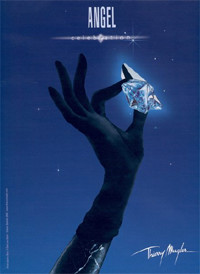 Angel, now one of the top five best-selling perfumes in the world, was not an immediate success. It took Thierry Mugler's devotion and deep conviction in the fragrance, matched by investing plenty of creative marketing effort into before the world warmed up to Angel - first through a cult of loyal customers who were completely addicted to its unique combination of patchouli, blackberry, helional, citrus and ethyl maltol (a novel scent molecule reminiscent of cotton candy) - and later, a world-wide loyalty to Angel as a brand, with a star-shaped refillable bottles and unusual spray mechanism, hi-tech urns for refilling in most retail locations, and many sequels, limited edition bottles, advertisement with unique haute-couture gown made for each model (some of which were celebrities).
