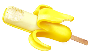 This summer, however, a new trend of bananas have rised to my palate's concious: the under-ripe raw banana, preferably with the peel. It first made an appearance in our lives at Second Beach Concession, which sold Peelin' Pops - Nestle's relatively new frozen desserts invention (which actually first showed up in Thailand in 2011...). This strangely innovative little bar is tiny but impressive: a modest amount of vanilla ice cream is covered with a thin layer of semi-frozen gel, not particularly sweet, and only charmingly slimy, which possesses an alarmingly realistic flavour of under-ripe banana. The experience of biting into the top of such pop and peeling off the "banana peel" is imaginative and addictive and I'm surprised not to have found it in more places.