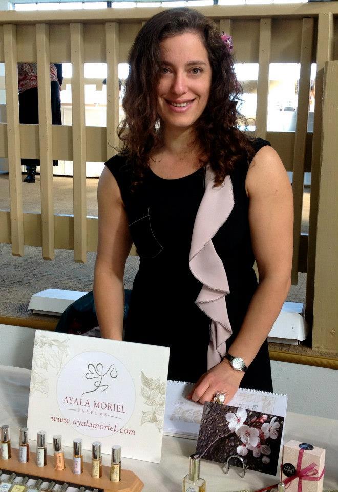 Lisa Fong (Artemisia Natural Perfume) setting up her table with flowers and smiles.