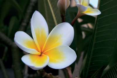 This gorgeous plumeria tree grows somewhere on 4th street if my memory serves me right, on the way to Persephenie's studio (Edinburgh avenue, just off 3rd street). I was surprised at the very faint and decidedly soapy scent it had in the morning, even though the sun was at full blast by 10am: it was so light, fresh and soapy I thought I was smelling an Ivory soap bar mingled with sun tan lotion... A couple of days later, in the full afternoon sun (apparently there is higher blast than full blast), it smelled very strongly of the original Kai perfume oil - heady, tropical, almost fruity, and just all around paradise-like!